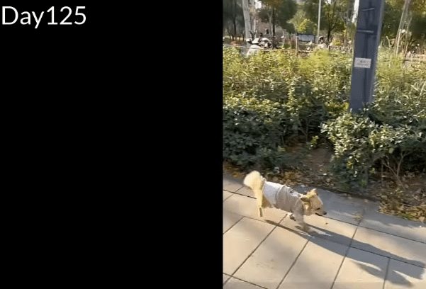 By around day 82, he was able to move more freely and began running happily while using his support equipment. His confidence grew stronger with each passing day.