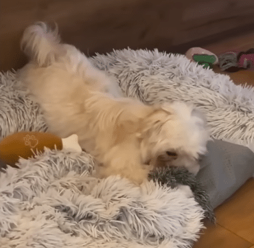 The fearful dogs once found inside a dirty bag have transformed into playful companions who love to run, chase toys, and curl up beside their owner.