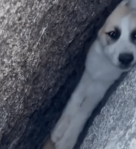 The gap was so tight that she could not move forward or back. As time passed, the frightened puppy began to cry out, her soft whimpers echoing through the rocky surroundings.