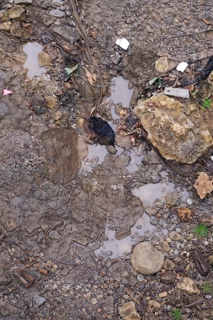 The ditch below the bridge was surrounded by steep dirt walls made even more dangerous by the rain. The ground had turned slick and unstable, making every step risky.