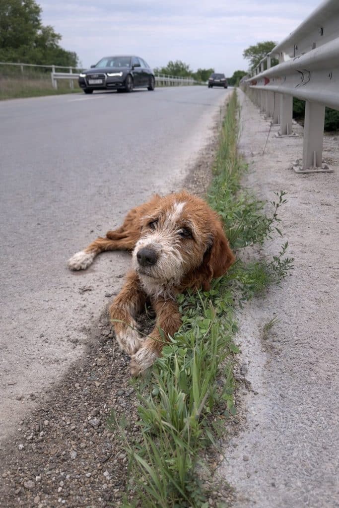 He was barely conscious, his body weak and fragile. It was difficult to imagine how long he had been there, exposed to the heat, noise, and danger of the roadside.