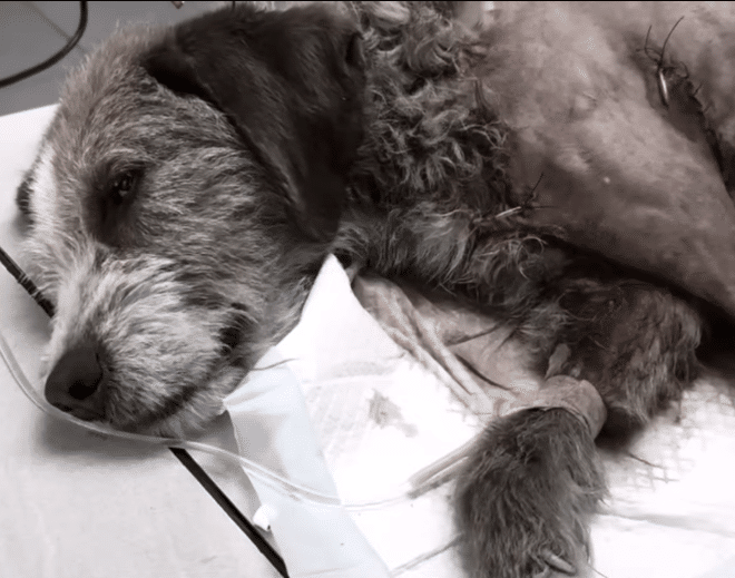 The man who discovered him knew immediately that the dog could not survive much longer without help.