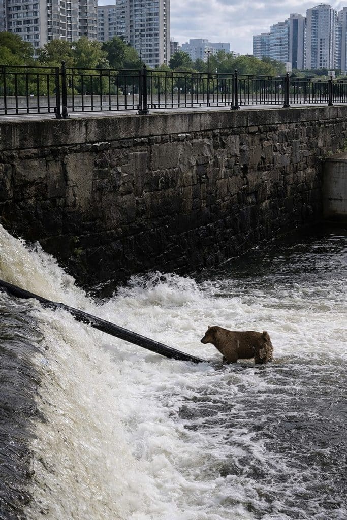 His paws grip tightly, using every bit of strength he has left. Letting go would mean being swept away by the powerful current.