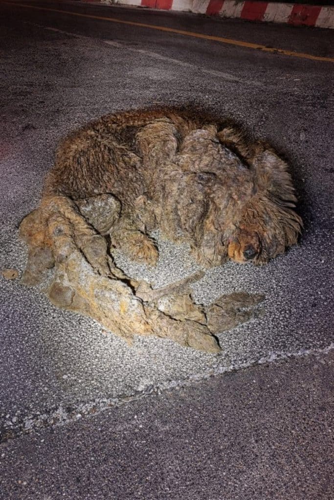 Her body was almost completely hidden under more than 30 pounds of tightly matted hair, tangled together with dirt, waste, and moisture. The weight of it all made walking incredibly difficult. Every step looked painful and exhausting.