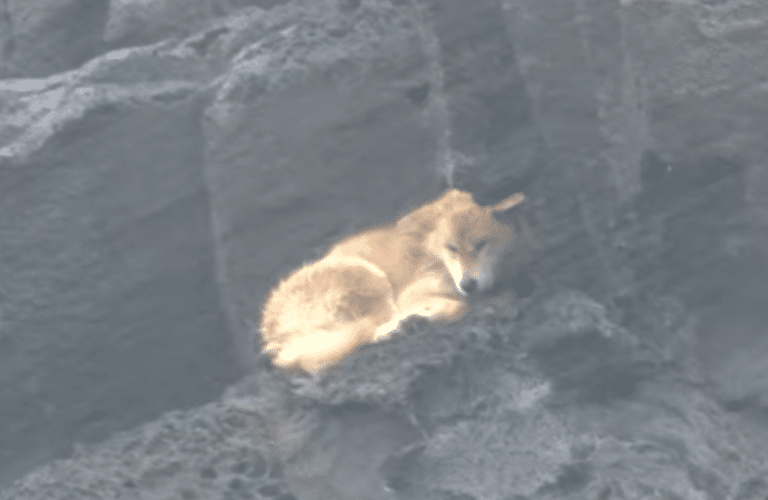 The uneven rocks were slippery, and the dog was quick and alert. Each time the team moved closer, he ran, navigating the terrain with surprising agility.
