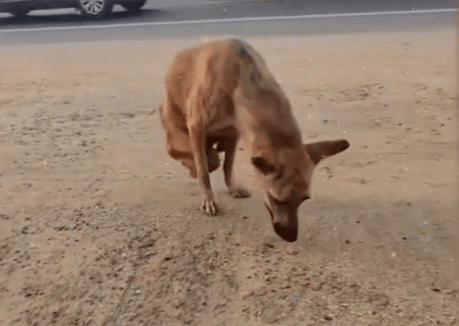 Using only his front legs, the small dog pushed himself forward across the ground with steady determination. His body was thin, marked by time and hardship, but his spirit remained strong.