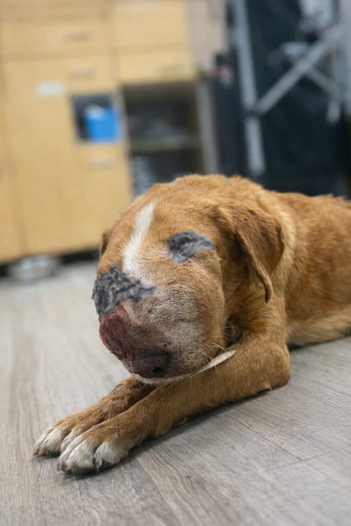 Cora’s story began in a place no animal should ever have to endure—alone, rejected, and in pain.