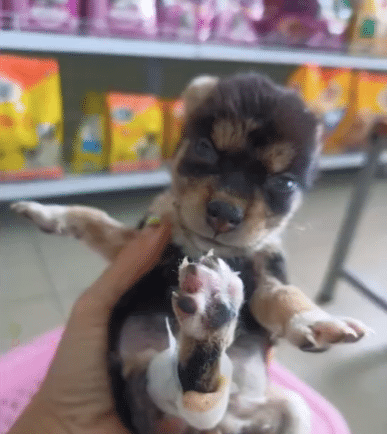 She cried softly, overwhelmed by everything she had experienced. Her tiny body shook as she was examined, and when placed on the floor, her back legs could barely support her.