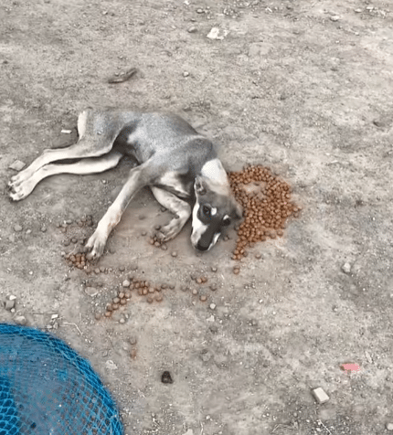Nearby, a small amount of food was placed beside him, though he was too exhausted to react much.