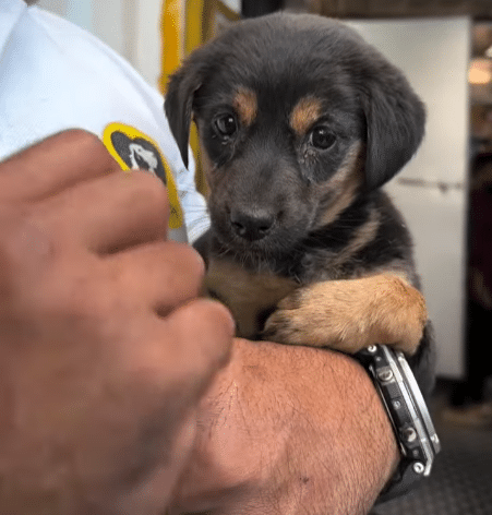 Wrapped in gentle hands, the small puppy began to feel warmth again—both from the air around him and from the kindness he had been missing.