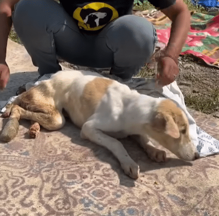 A rescuer from Saahas For Animals quickly comes to Dua’s side.