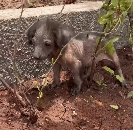 Their bodies were painfully thin, weakened by severe malnutrition. Large patches of fur were missing, leaving their skin exposed and fragile due to a serious skin condition.