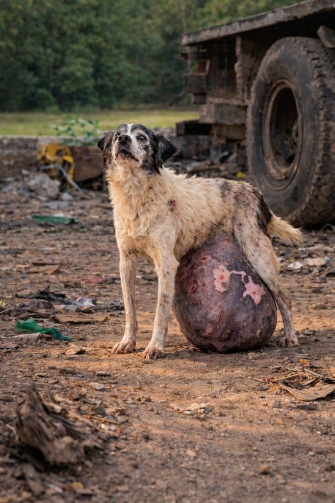It showed a small dog struggling to move, a large swelling hanging beneath his body. Each step looked difficult, as if the weight he carried was simply too much for such a small frame.
