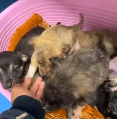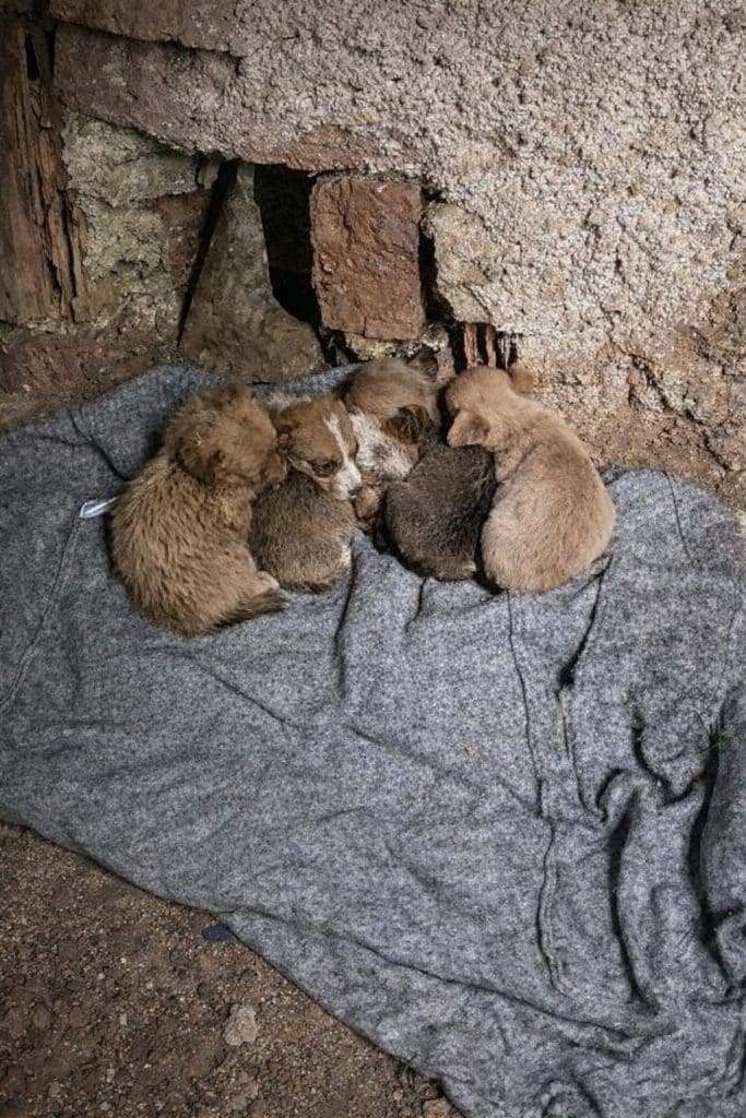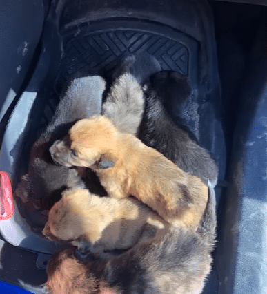 Hidden in the bushes were not one, but six tiny puppies. They were huddled together, fragile and trembling, left alone in the cold.