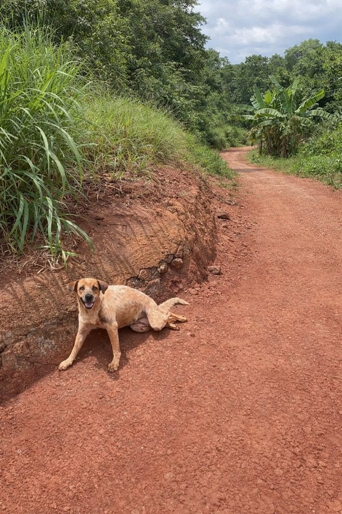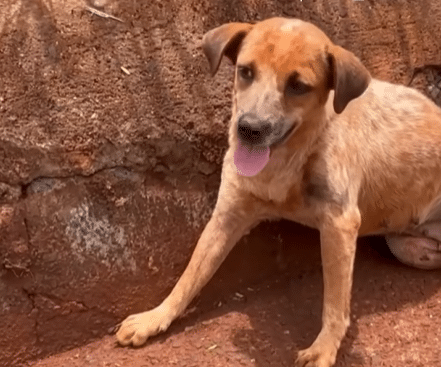 The dog once left helpless by the roadside is now at the center of something full of hope.