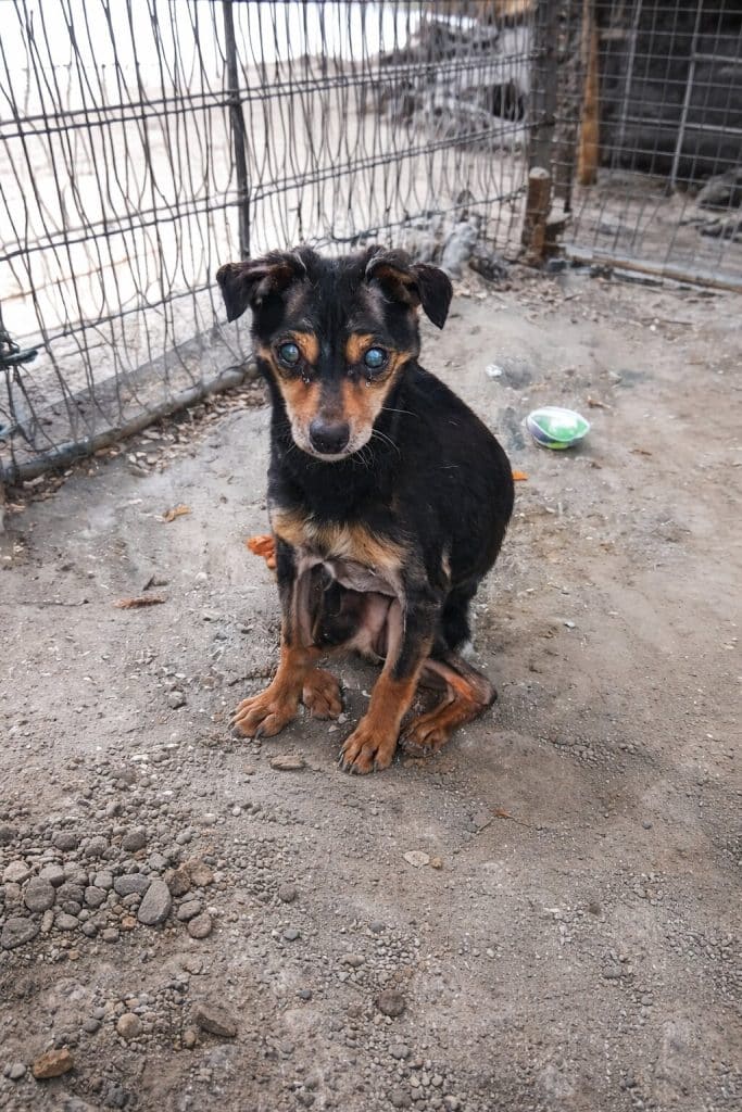 Richie was discovered in a state that could break even the strongest heart. Years of neglect had left him painfully thin, weighing just over 2 kilograms. Completely blind, he had never known kindness or affection. Every interaction with humans filled him with fear, leaving him tense and sometimes even aggressive.