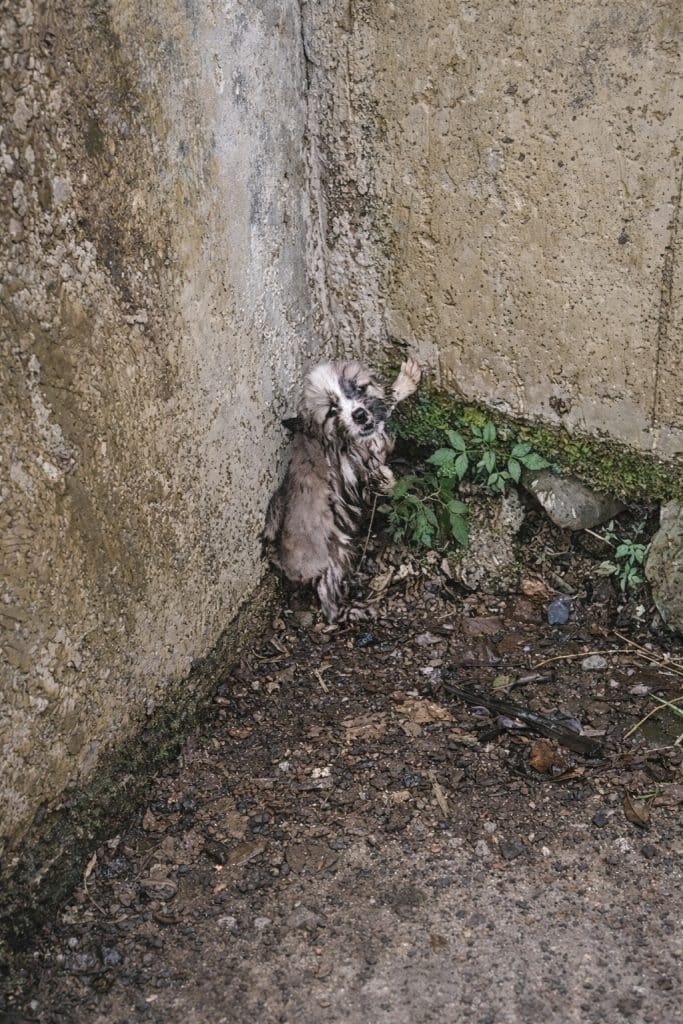 A mother and her young daughter were passing by when they noticed a small movement in a muddy roadside drain. Hidden beneath murky water and debris was a tiny puppy—soaked, trembling, and too frightened to move.