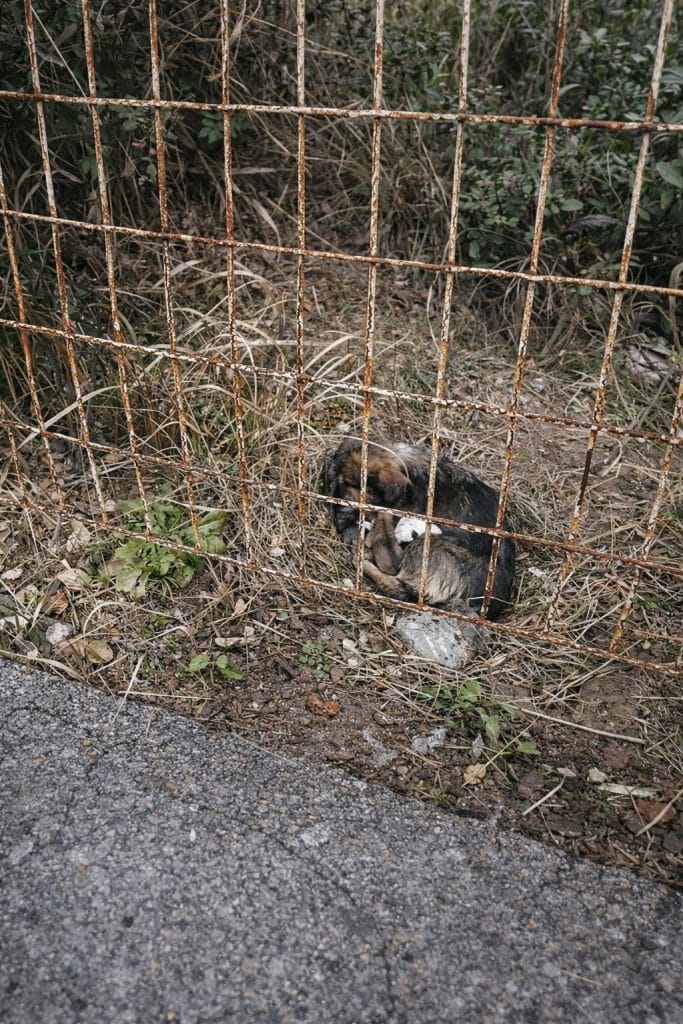 Left behind in the nest were four newborn puppies, their eyes still closed, their bodies too small to survive on their own.