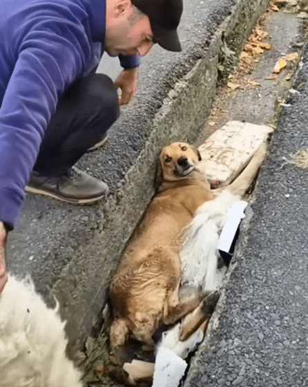 Video: Man Gently Rescues Exhausted Dog Trapped in a Narrow Drain