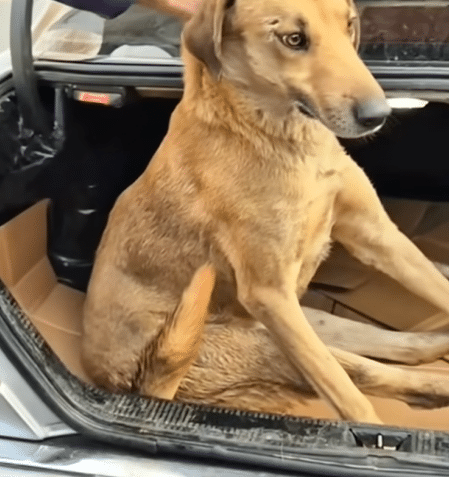 He lifted the dog again—this time not to free him, but to carry him somewhere better. A nearby silver car waited, its trunk already prepared with a piece of cardboard to create a clean, safe space.