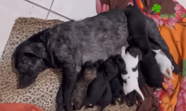 When it was over, ten tiny puppies lay beside her—each one alive, each one a quiet victory. Their coats varied in color, but their beginning was the same.
