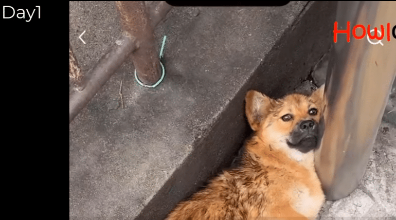 A small golden dog had been seen curled up near a train station—soaked, trembling, and barely moving. When the rescuer arrived, she was still there, pressed into the corner as if trying to disappear.