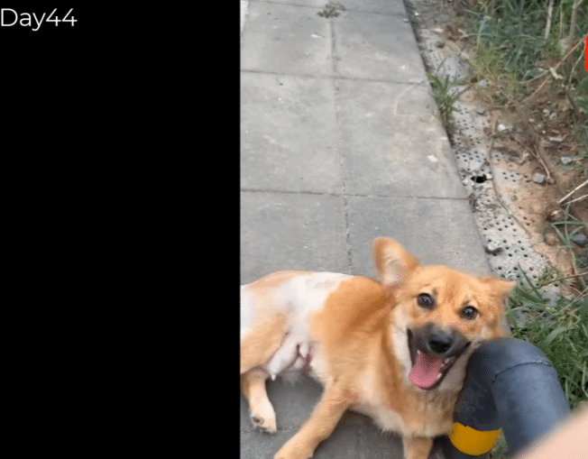The same dog who once lay broken in the rain was now moving freely—outdoors, under the sun, her steps light and steady.