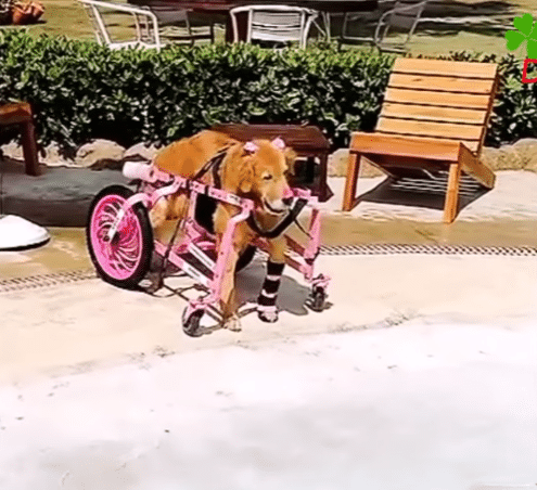 So she found a way to help him keep moving—a small pink wheelchair that allowed him to explore the world again.