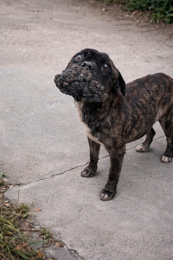 Around his mouth and muzzle was a large, rough growth that covered nearly everything. It made even the simplest things—like eating or drinking—almost impossible.