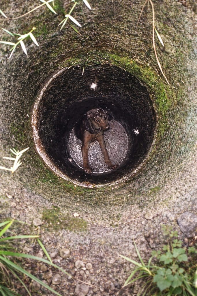 Somewhere out of sight, in a narrow and forgotten place, a small dog named Levi found himself trapped at the bottom of a deep well.