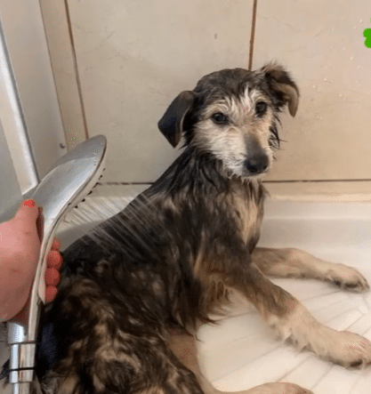 Her fur, dark and fluffy, did little to protect her thin body. When rescuers approached, she didn’t run far. There was hesitation… but not resistance.