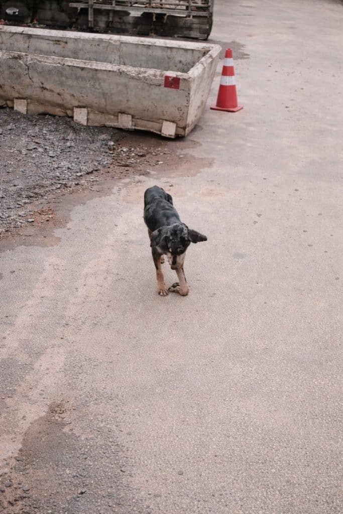 On a rainy November day, a thin stray dog wandered the streets, searching for something—anything—to survive.