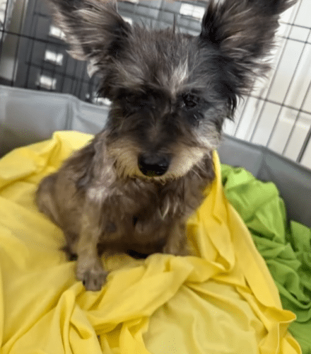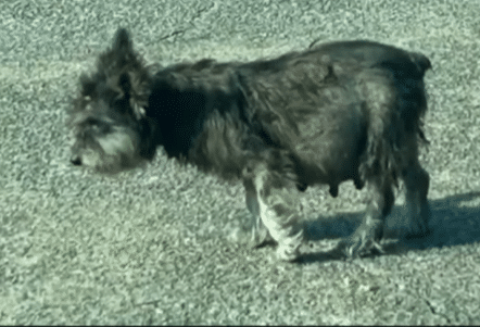 By the time she was found, her body was already telling the story. Thin, tired, and covered in dirt, her coat was tangled with dry grass and small thorns that clung to her wherever she went.
