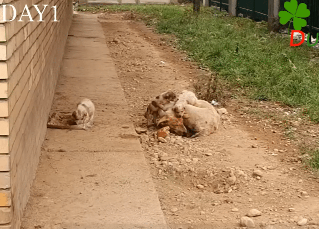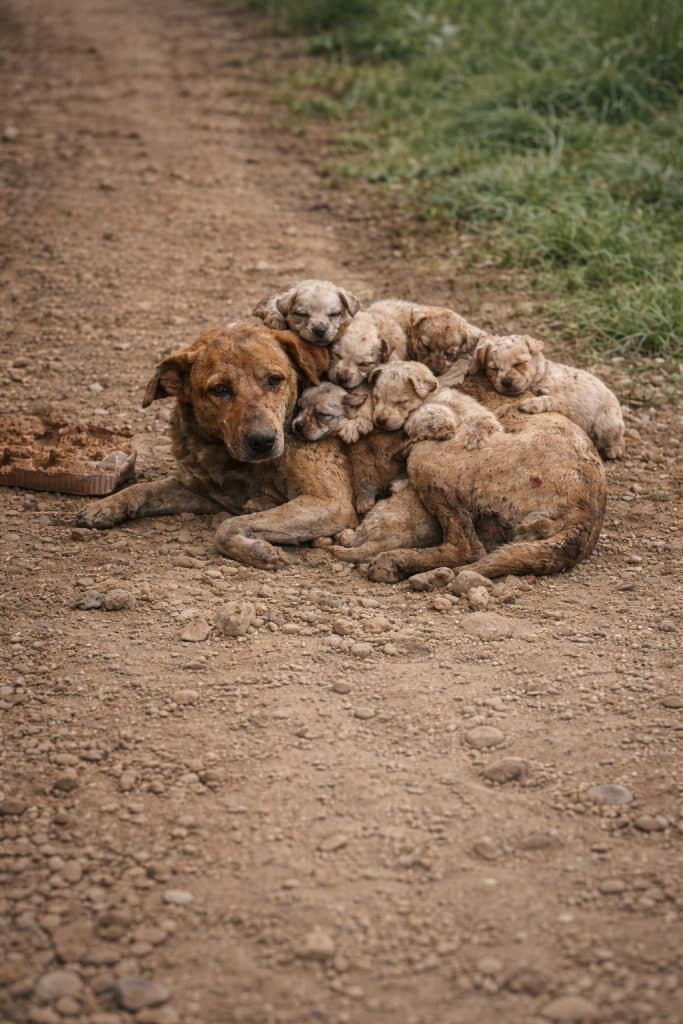 The puppies stayed close to her, unaware of how fragile the moment truly was.