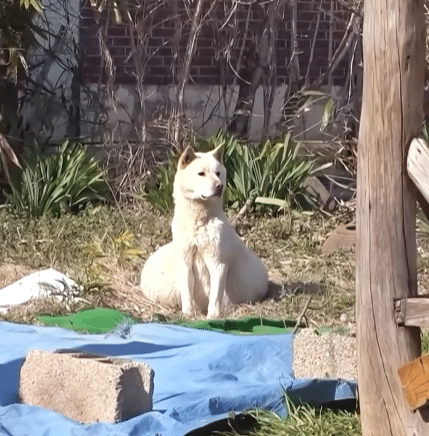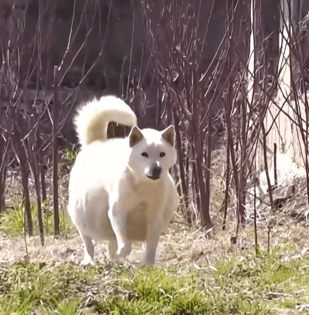 A white stray dog wandered quietly, her belly unusually swollen. To anyone passing by, it seemed obvious—she must be pregnant.