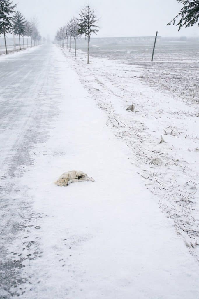 On the way home, someone noticed a small shape lying motionless by the roadside.