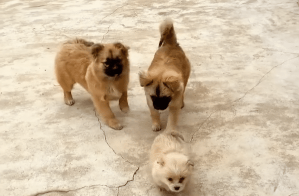 At first, the puppies were cautious.