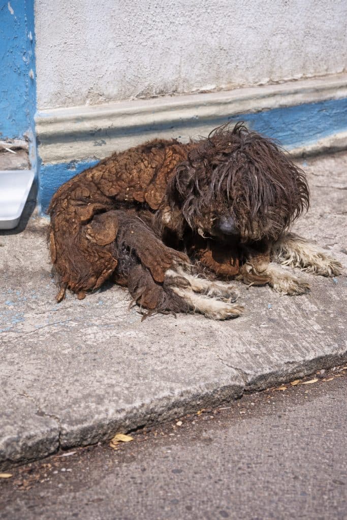 Just a tangled mass of dirty, hardened fur—matted into thick layers that hid everything beneath. No clear shape. No expression. No sign of the life still inside.