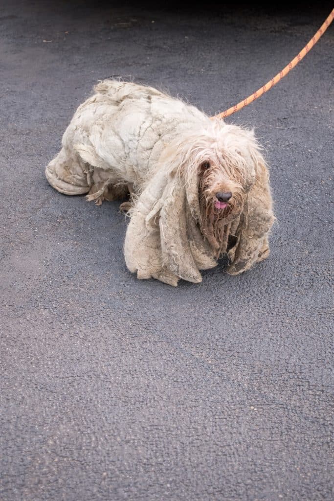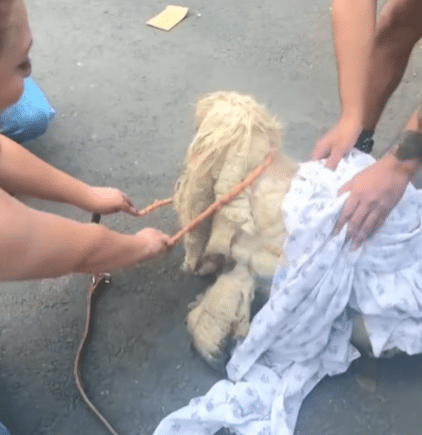 Carefully, patiently, the team worked to remove the thick layers of matted fur.