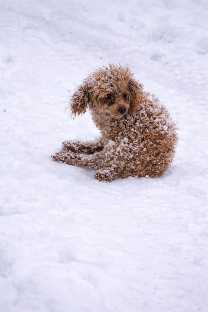 A small dog—later named Pinky—moved slowly across the white ground.