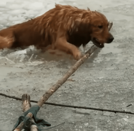 Trapped in the icy water below, the Golden Retriever struggled to pull himself up. Again and again, he pushed his front paws onto the slick edge of the ice, trying desperately to climb out.
