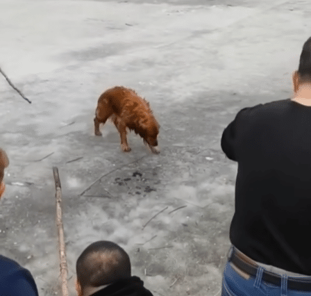 Just a soaked, trembling dog standing on the frozen lake again—alive.