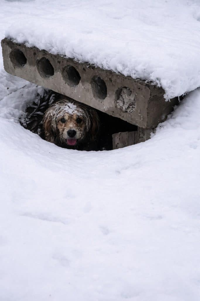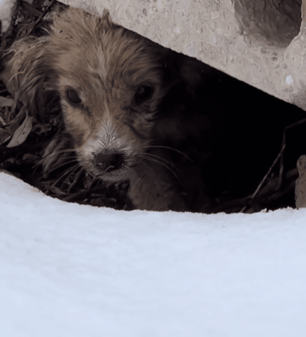 A small puppy had become trapped beneath a slab of concrete, hidden under layers of snow.