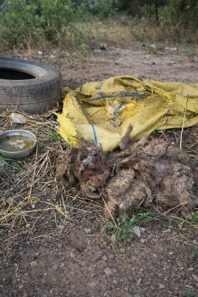 His fur had grown so long and so tightly matted that it formed heavy clumps around his body—