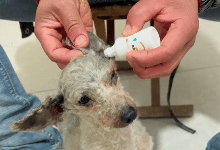 Careful hands working to clean not just his fur—but the skin beneath it.