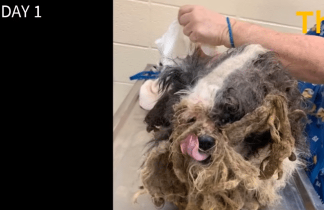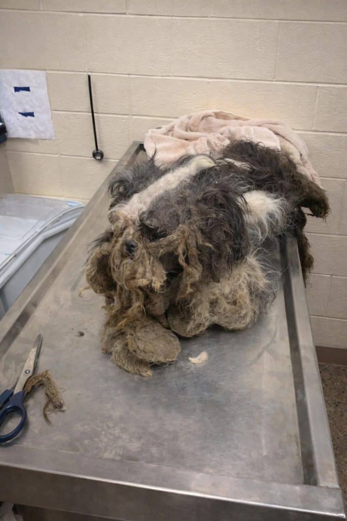 Layer by layer, the matted fur was cut away—more than five pounds of it in total.