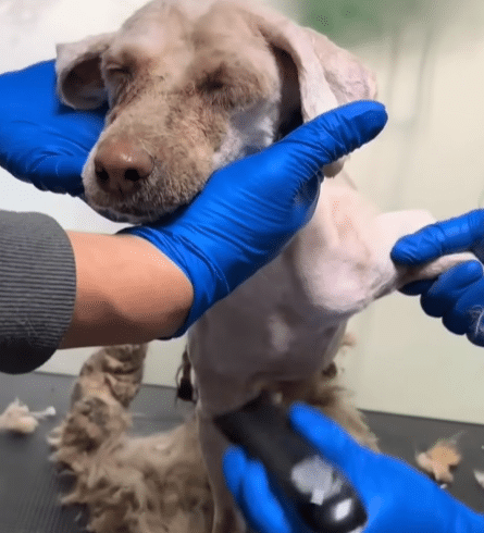 His fur wasn’t just dirty—it was completely matted. Thick, hardened layers clung to his body, trapping debris and weighing him down.