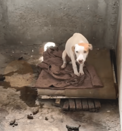 Inside an abandoned, crumbling house, hidden from the outside world, a small puppy was trying to survive.