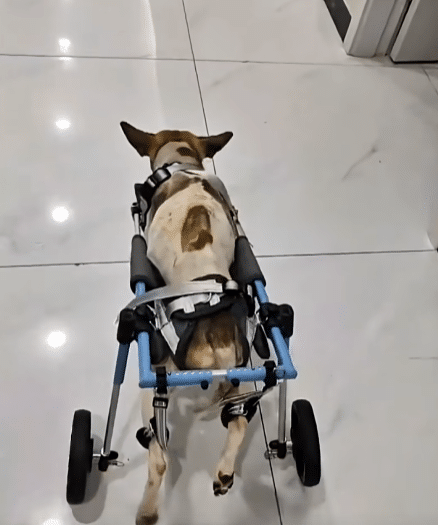 Her back legs no longer carried her, forcing her to pull herself forward using only her front paws.