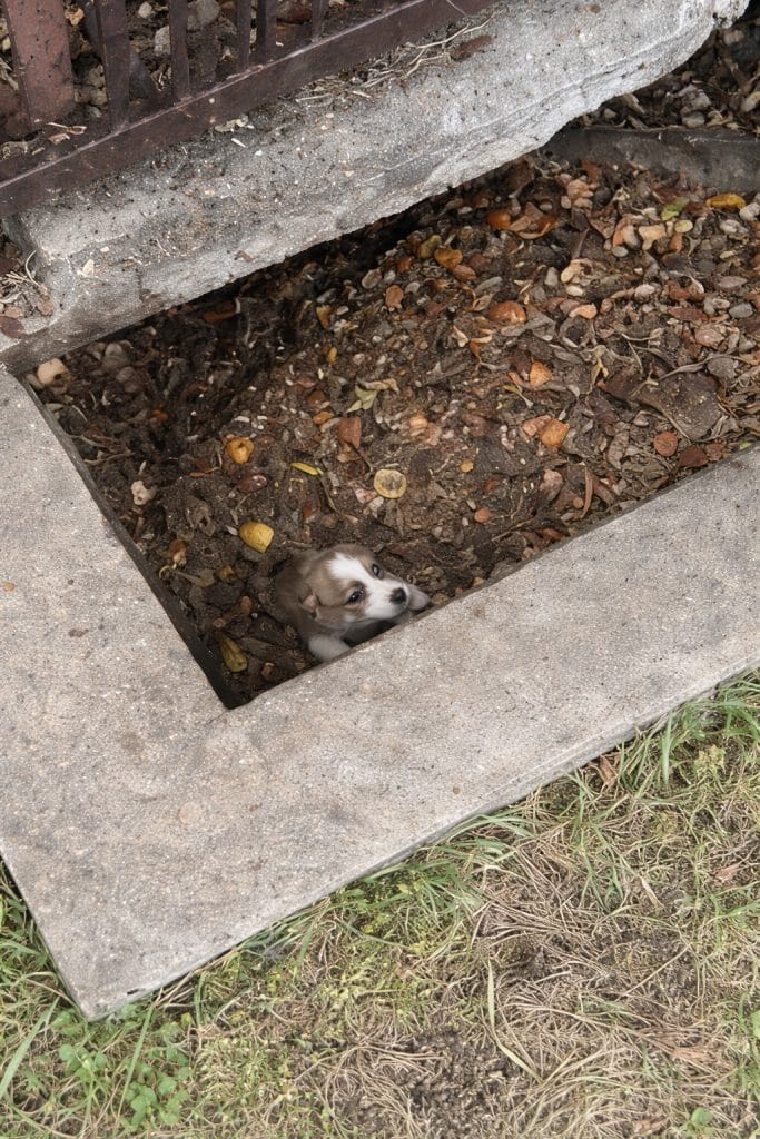 In a quiet, dirty corner of the street, barely visible to anyone passing by, a small dog lay curled into himself.
